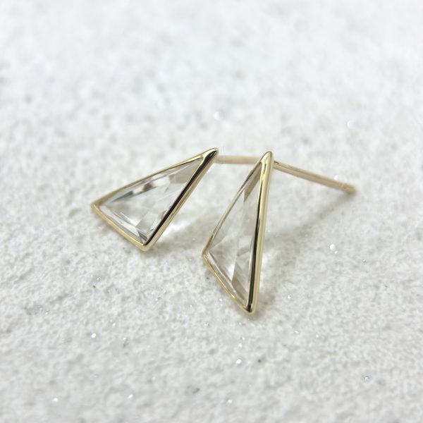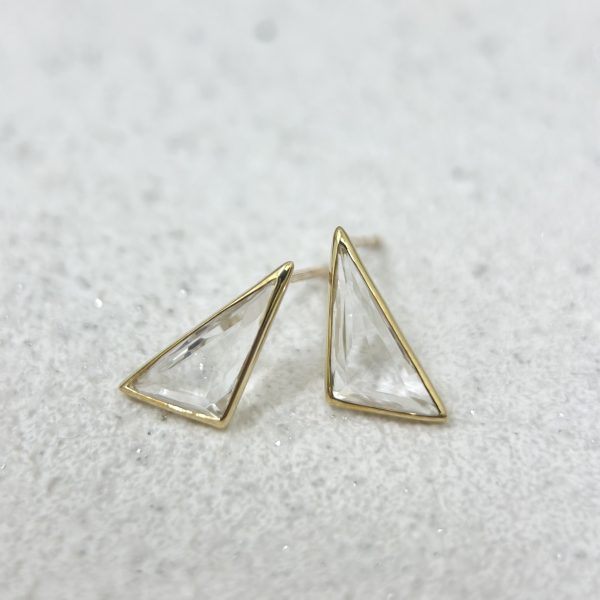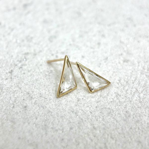 Bông tai đá Quartz tam giác Vàng Vàng K10