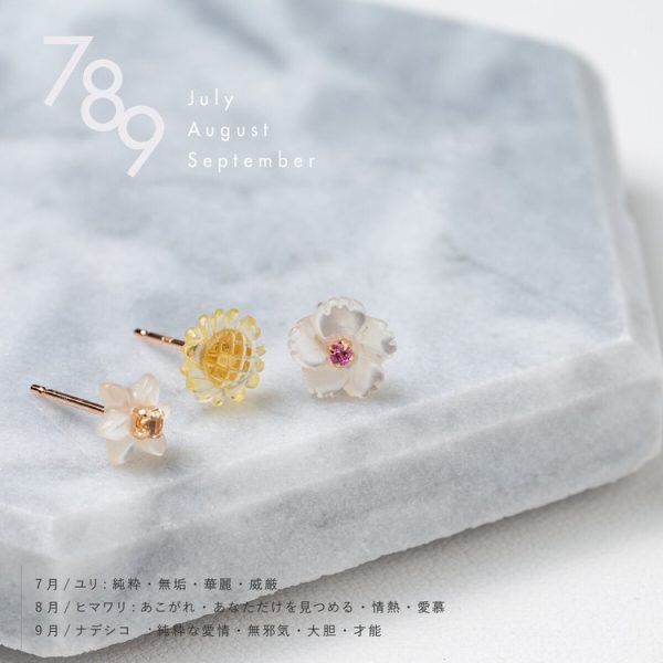 Thiết kế từ đá và vỏ sò tự nhiên, mỗi đôi hoa tai là biểu tượng của loài hoa tháng sinh, gửi gắm thông điệp như một lá bùa may mắn – dành tặng bản thân hoặc người thương.