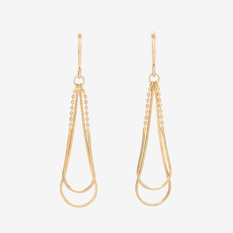 Bông tai móc dáng dài phối 2 giọt nước Vàng K10 ESTELLE