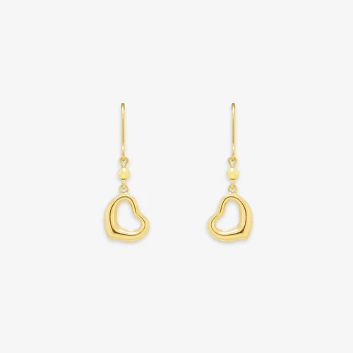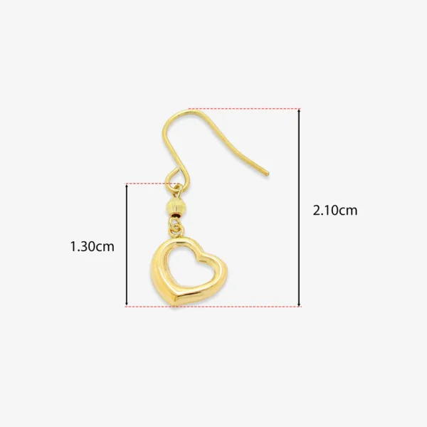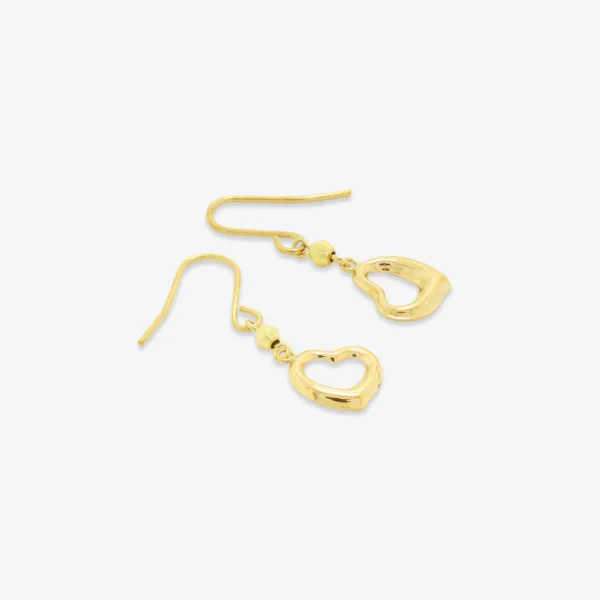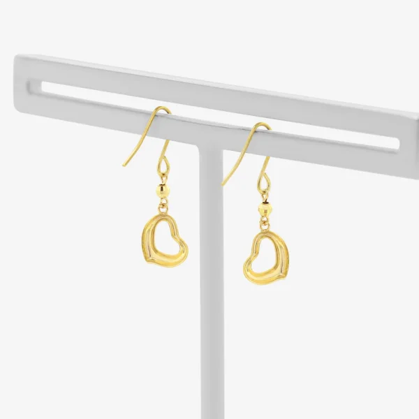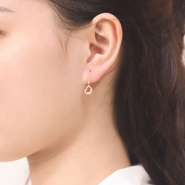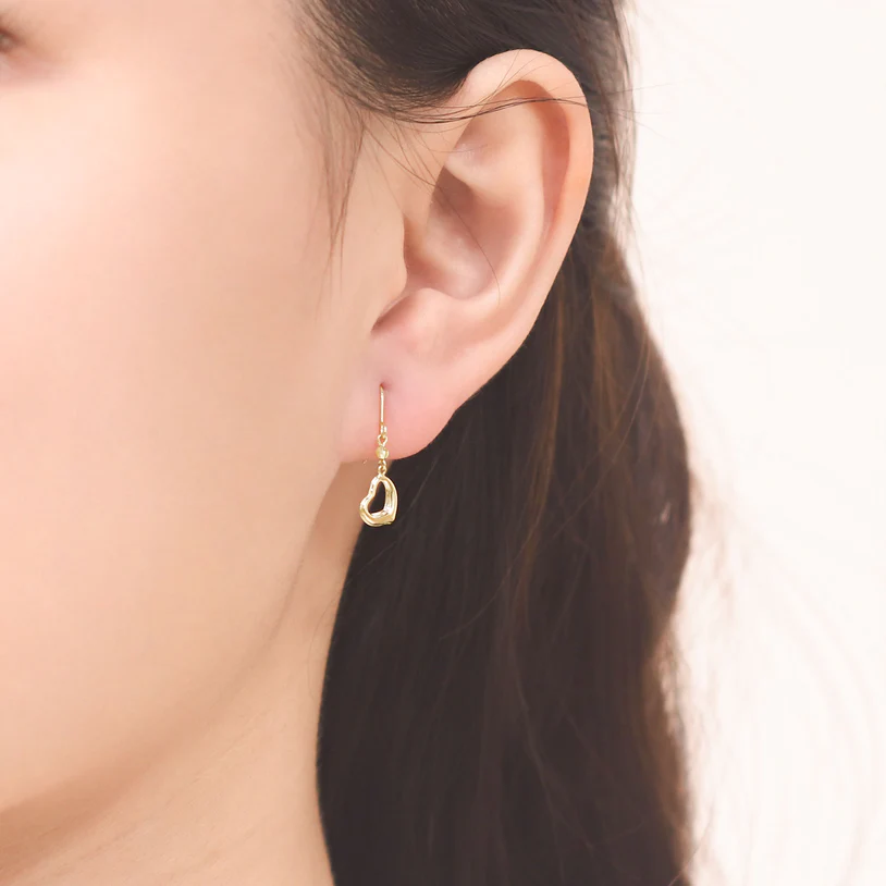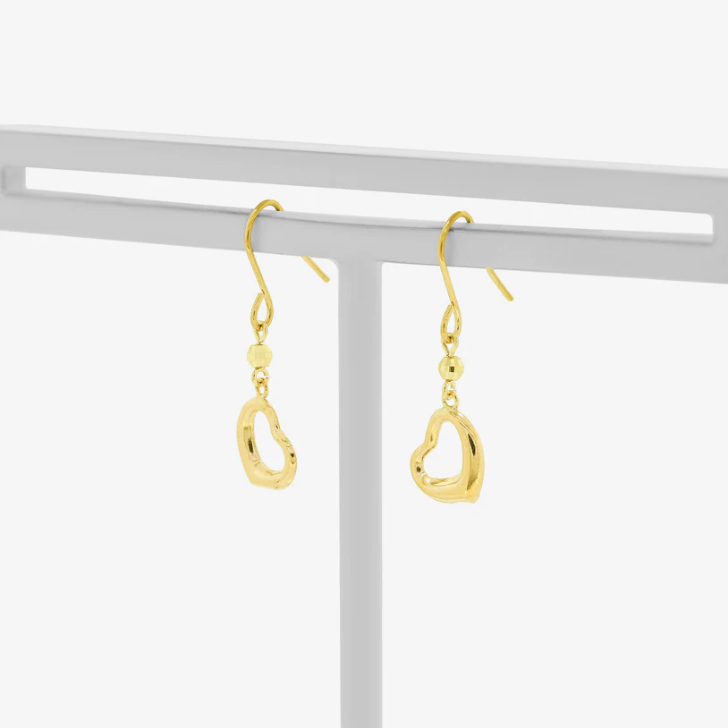 Hoa tai móc bằng vàng vàng với họa tiết trái tim bằng kim loại cơ bản lắc lư trên tai bạn.