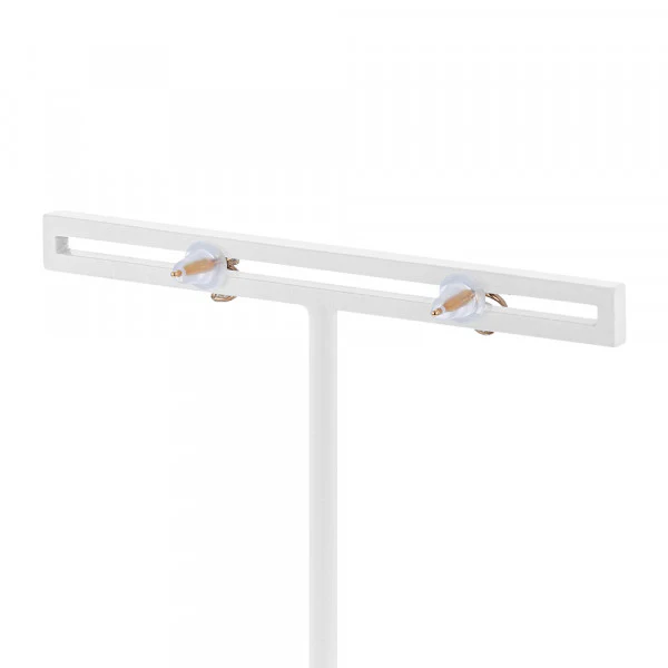 Đôi hoa tai này có trụ thẳng và được cố định bằng móc cài (phía sau).