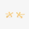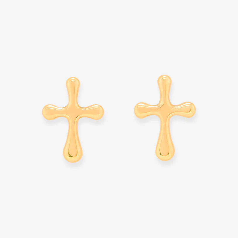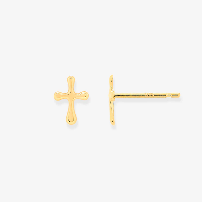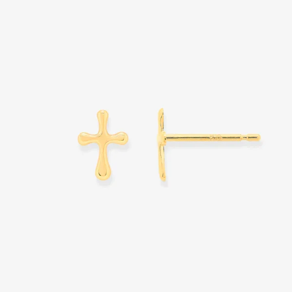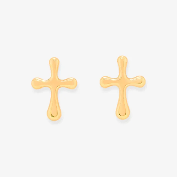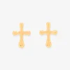 Hoa tai có họa tiết chữ thập bằng vàng vàng lấp lánh dưới ánh sáng.