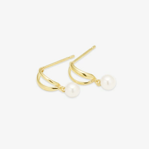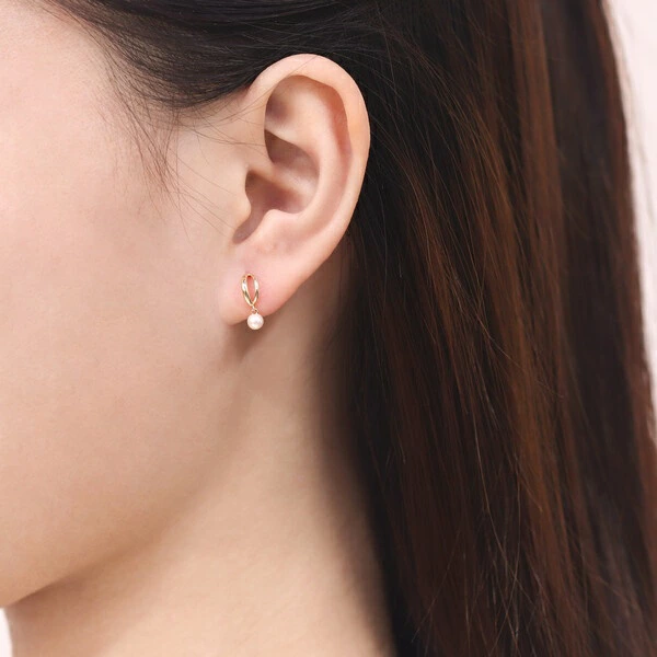Những đường vàng tạo nên vẻ thanh lịch cho đôi hoa tai. Đôi hoa tai ngọc trai nước ngọt buông lơi là điểm nhấn tinh tế có thể dễ dàng phối hợp với phong cách hàng ngày.