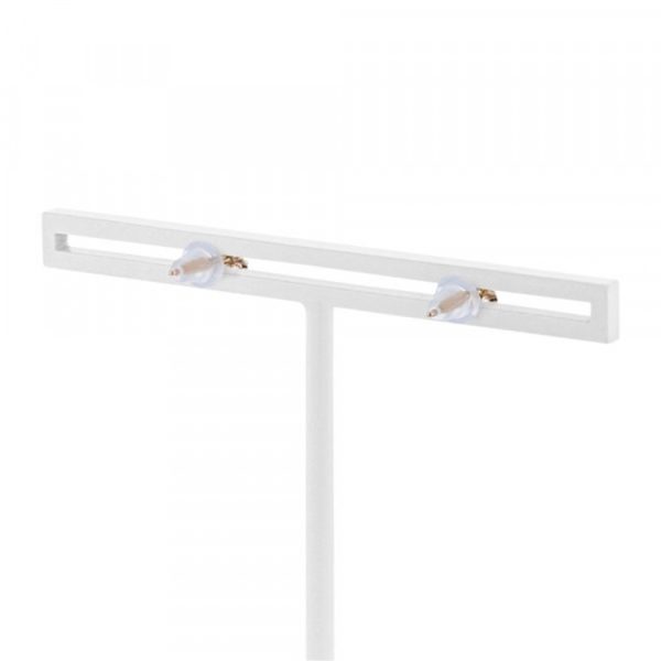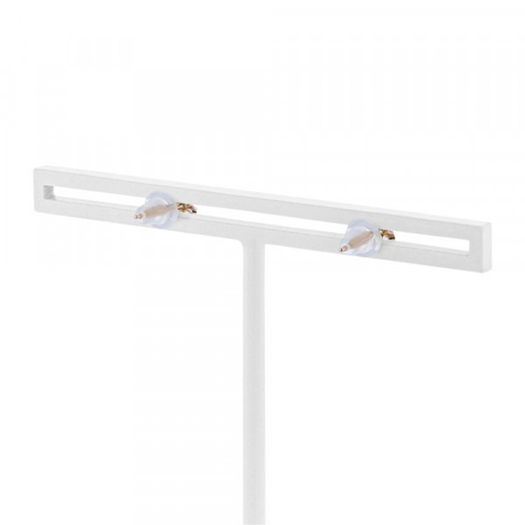 Đôi hoa tai này có trụ thẳng và được cố định bằng móc cài (phía sau).