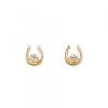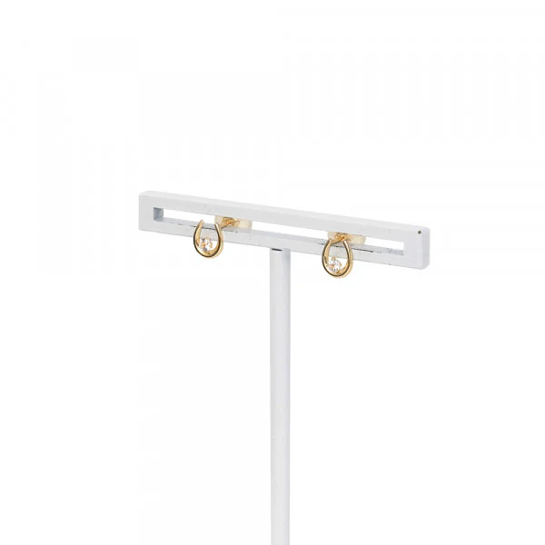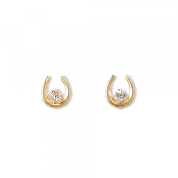 Hoa tai hình móng ngựa bằng vàng vàng với đá topaz trắng lấp lánh tinh tế.