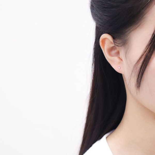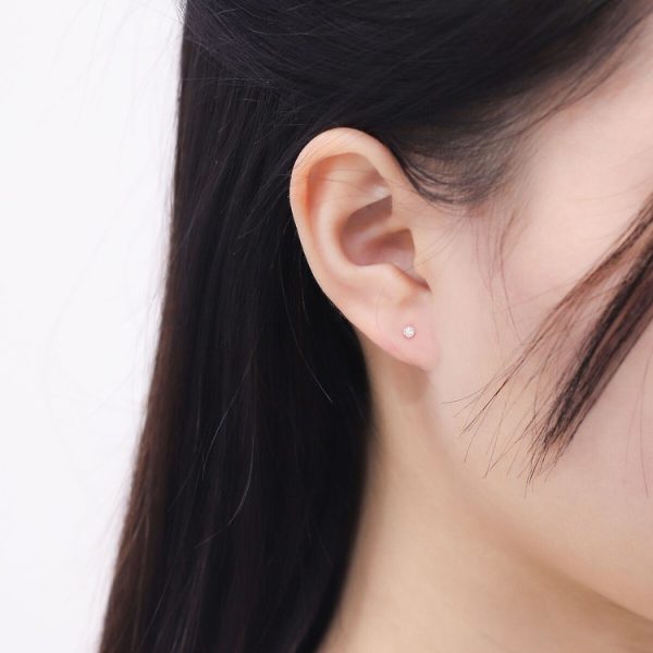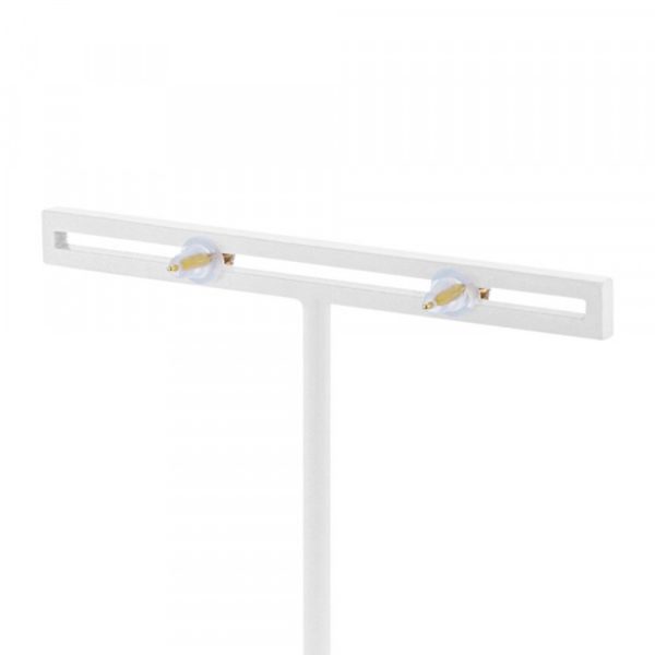 Đôi hoa tai này có trụ thẳng và được cố định bằng móc cài (phía sau).