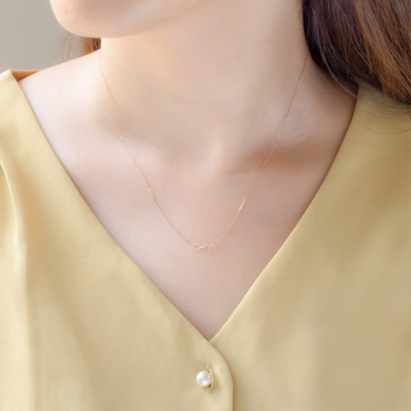 Dây chuyền vàng K10 nơ đính kim cương ESTELLE