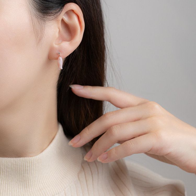 Chất liệu: Vàng K10/Xà cừ hồng/topaz trắng